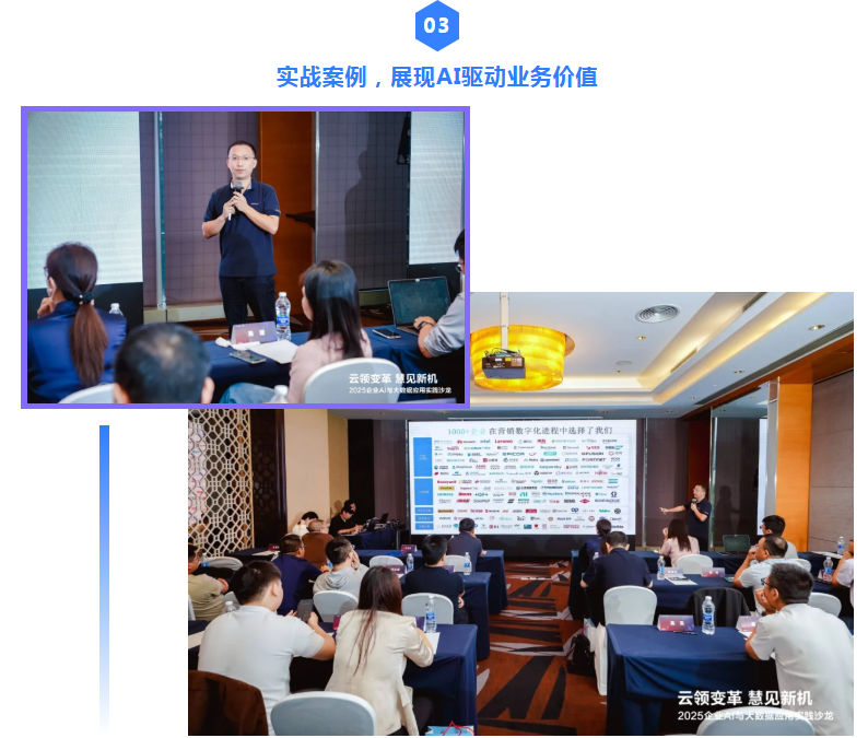 河北慧日技术总监聚焦零售与制造场景,带来《AI智能体——AI驱动下的零售、制造企业数字化转型》实战分享。他从AI数字员工、智能客服、销售话术陪练、货架盘点等十余个真实案例出发,生动展示了AI智能体在提升运营效率、优化客户体验、激活沉默线索等方面的实际效益。